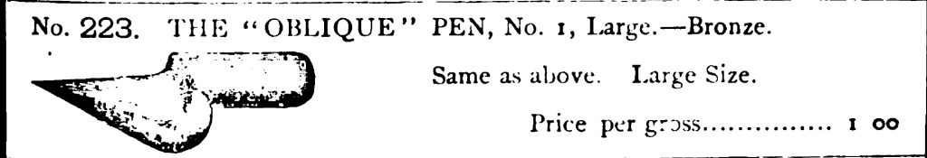 - This is another pen, like the Colorado and Silverine pens, where the official number does not appear on the pen but instead this is one of a series and the imprint includes the series number but not the style number. (Oblique No 1 – Large = #223, Oblique No 2 – Small = #222)