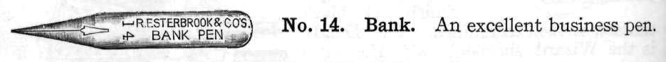 - “This pen possesses the property of firmness, while its long nibs and large pierce hole make it moderately elastic. Its general acceptance by the writing public has placed it only second in popularity to the Falcon.” (1883)