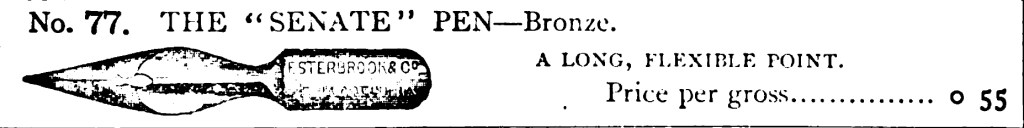 - Listed in the 1879 Trade Price List of the Esterbrook Steel Pen Company (The American Stationer, September 4, 1879) (Contributed by Andrew Midkiff)