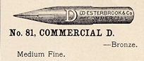 - Listed in the 1879 Trade Price List of the Esterbrook Steel Pen Company (The American Stationer, September 4, 1879) (Contributed by Andrew Midkiff)