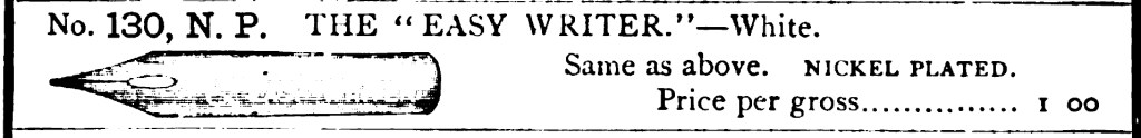- Listed in the 1876 Illustrated Price List of the Esterbrook Steel Pen Company, January 1, 1876; courtesy of The Hagley Museum and Library, Wilmington, Delaware; contributed by Andrew Midkiff