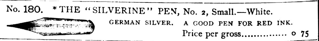 - “German Silver. A good pen for red ink. Most popular pens.”
