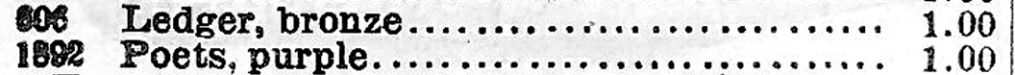 - Included in the 1877 or 1878 ads in the American Bookseller
