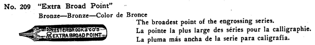 - It would be interesting to test this against the #284 Blackstone, another extremely broad stub. I suspect the Blackstone is slightly broader, but it’s considered a “signature pen” rather than part of the engrossing series.