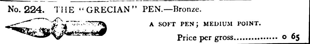 - Listed in the 1879 Trade Price List of the Esterbrook Steel Pen Company (The American Stationer, September 4, 1879) (Contributed by Andrew Midkiff)