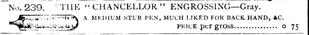 - “A Fine pointed Stub Pen. Very popular, and well adapted for backhand writing.”