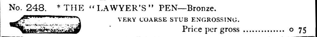 - Name(s): Broad Engrossing Pen, The Lawyer’s Pen