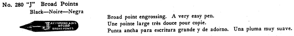 - “Broad Point Engrossing. A Very Easy Pen.”