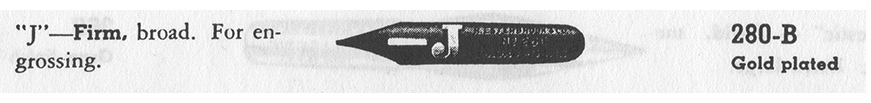 - Name(s): J Pen, “J” Engrossing Pen, Selected J, J Broad Points