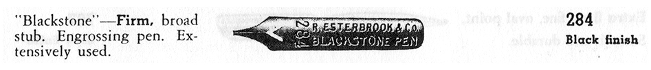 - “Firm, broad stub. Engrossing Pen.”