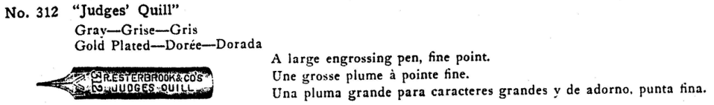 - Listed in the 1926 Esterbrook Catalog: while I got this from another source, it appears that this pdf may originally be from the collection of the Pen Collectors of America, or from the same source from which they got their scan.