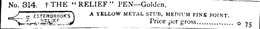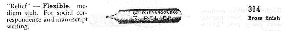 - When Esterbrook looked to make its first fountain pen, it chose the 314 Relief, out of all of their nibs, to be the first nib of the first fountain pen. The Relief fountain pen remained popular, especially in the UK, for quite a while.