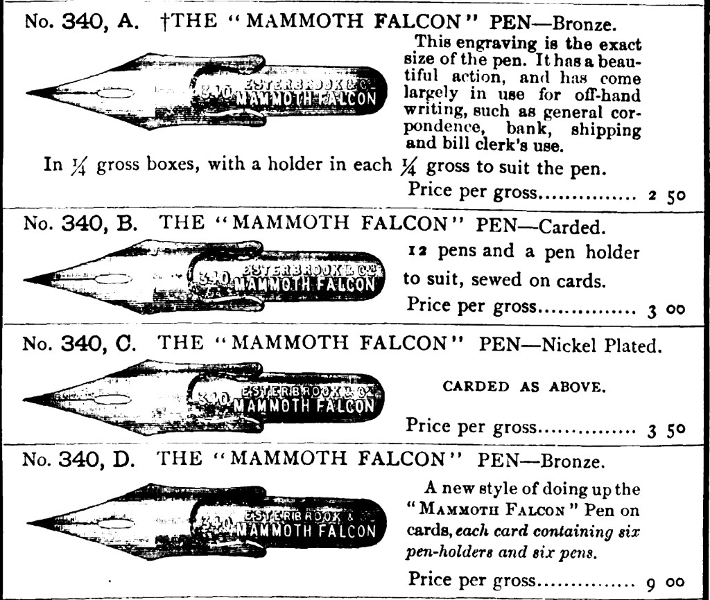 - Listed in 1883 Esterbrook Catalog