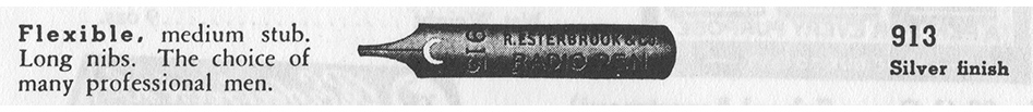 - Listed in the 1918 Announcement to the Trade: Esterbrook Steel Pen Mfg. Co. Standardization of Esterbrook Pens
